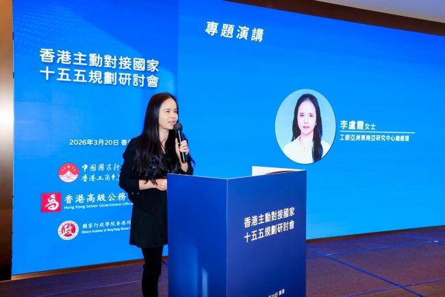 中國工商銀行(亞洲)東南亞研究中心李盧霞總經理做了《主動對接「十五五」,融入國家發展大局》的專題分享。她回顧了「十五」至「十五五」規劃對香港的戰略定位,從「三個中心」到「十大中心、兩大樞紐、一大生態圈、一大高地」,香港在國家發展大局中發揮著越來越重要的「超級聯繫人」和「超級增值人」角色。面對技術、增長、政策的持續深刻變化,香港有望在首個「五年規劃」期內持續服務中國經濟現代化進程,並在此過程中實現本地經濟多元化高質量發展。一是實施「金融+」戰略,特別是優化上市制度、發展固收市場、深化互聯互通、升級金融基建等,鞏固證券、資管、離岸人民幣等傳統優勢,打造黃金交易、數字資產等新業務生態。二是加快推進國際創科中心建設,提速北部都會區發展,以「AI+」驅動產業升級,打造國際高端人才集聚高地,加快構建具競爭力的「創科全生態」。三是強化國際貿易和投資樞紐功能,深度融入「一帶一路」戰略,支持內地企業開拓新興市場,吸引國際資金投資中國。四是深化「宜居宜業宜遊」灣區建設,推動規則銜接、要素流動、基建聯通,拓闊香港發展腹地,共建國際一流灣區。